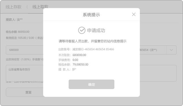 04可以在"财务往来"中查看您的出款信息,当出款记录状态变成"出款成功",表明您完成出款操作;